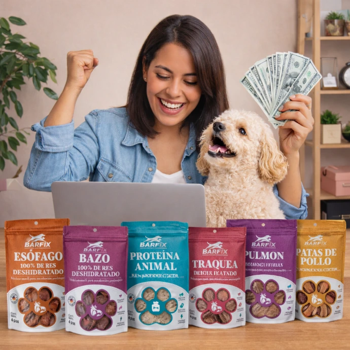 Premios naturales elaborados con proteína animal cocinados a baja temperatura para conservar nutrientes y mantener su sabor